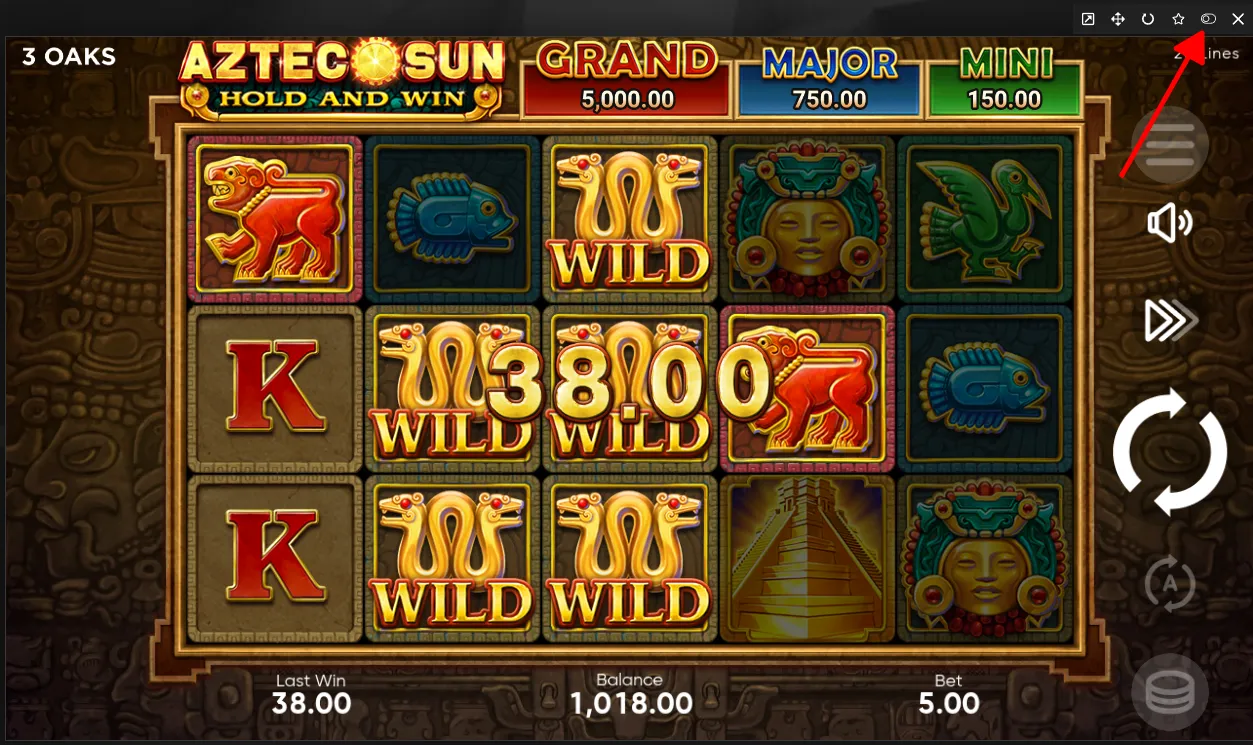 Aztec Sun: Hold and Win is a classic five-reel video slot with 3 rows of symbols and 25 fixed pay lines. At its core is a state-of-the-art Random Number Generator (RNG), certified by independent auditors to guarantee unbiased spin results.